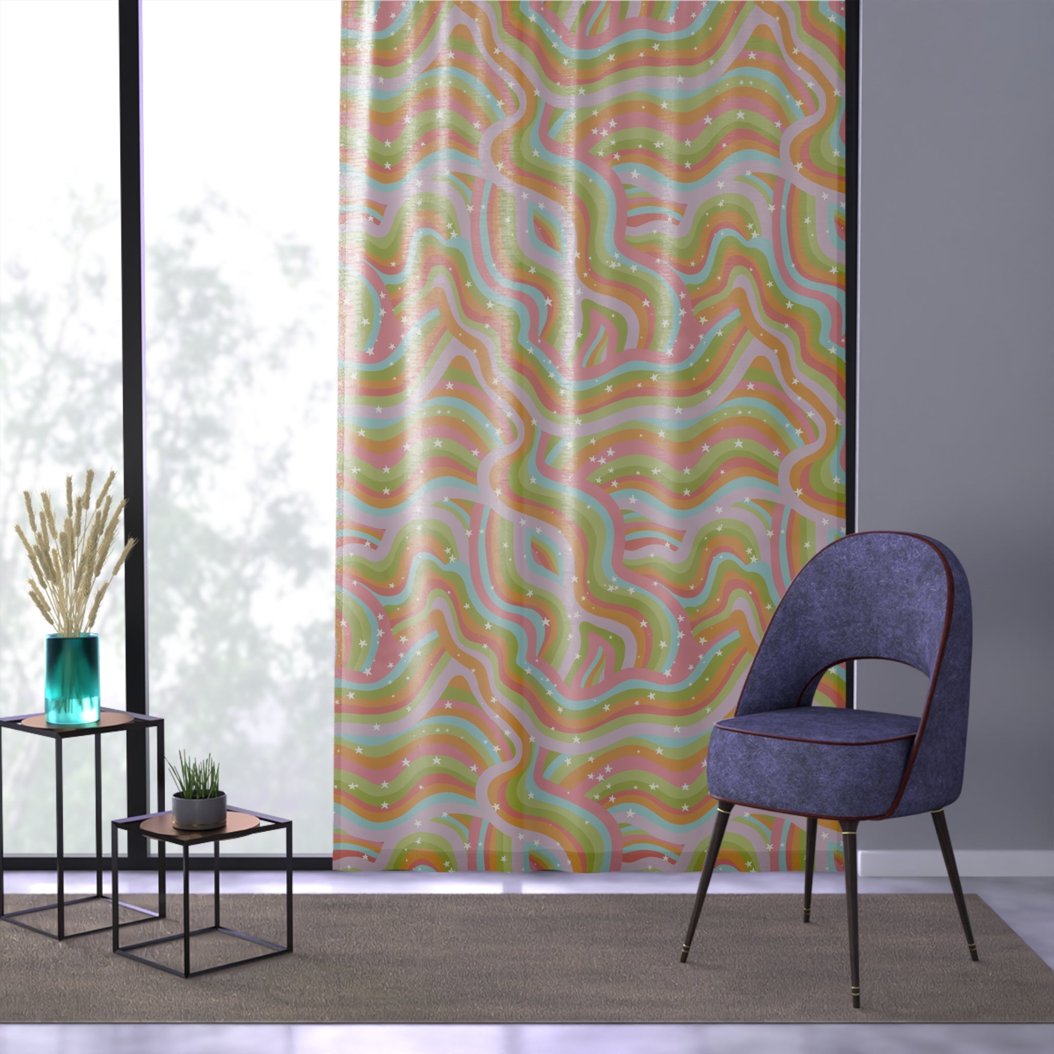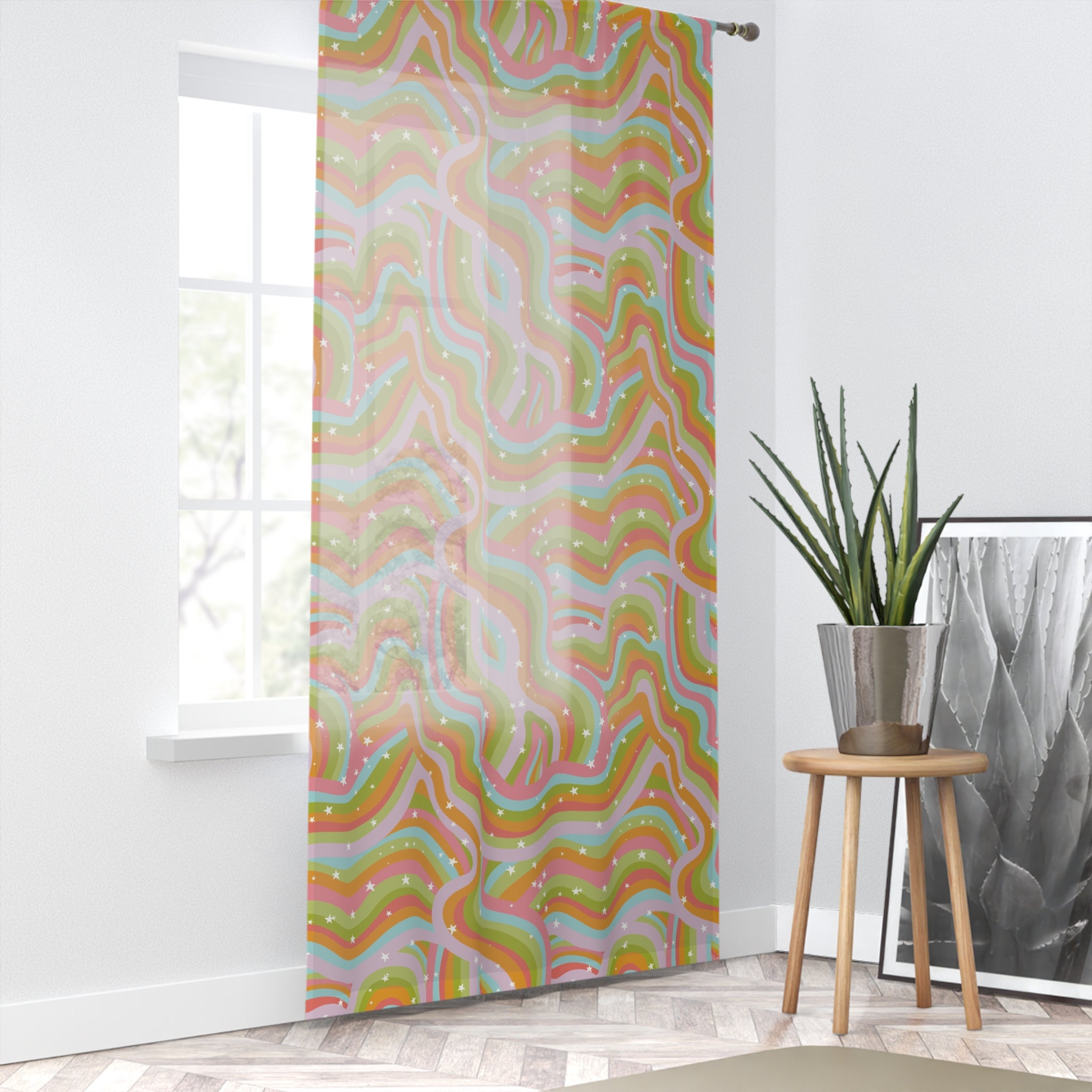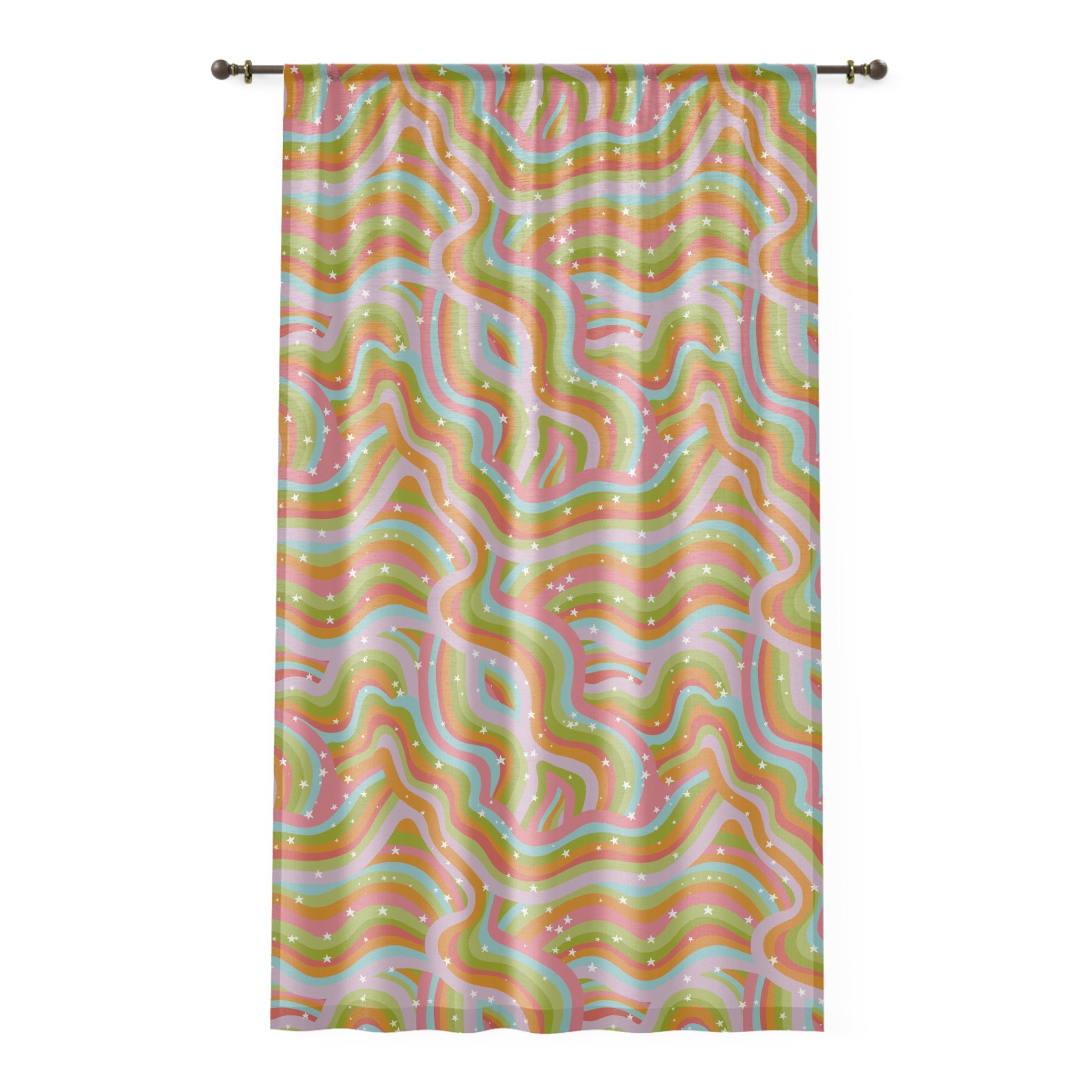 Step into another dimension with the Cosmic Drift Window Curtain, where retro vibes, boho dreams, and psychedelic colorways collide. Designed to transform any room into a high-frequency sanctuary, this curtain isn’t just decor—it’s a vibe shift.