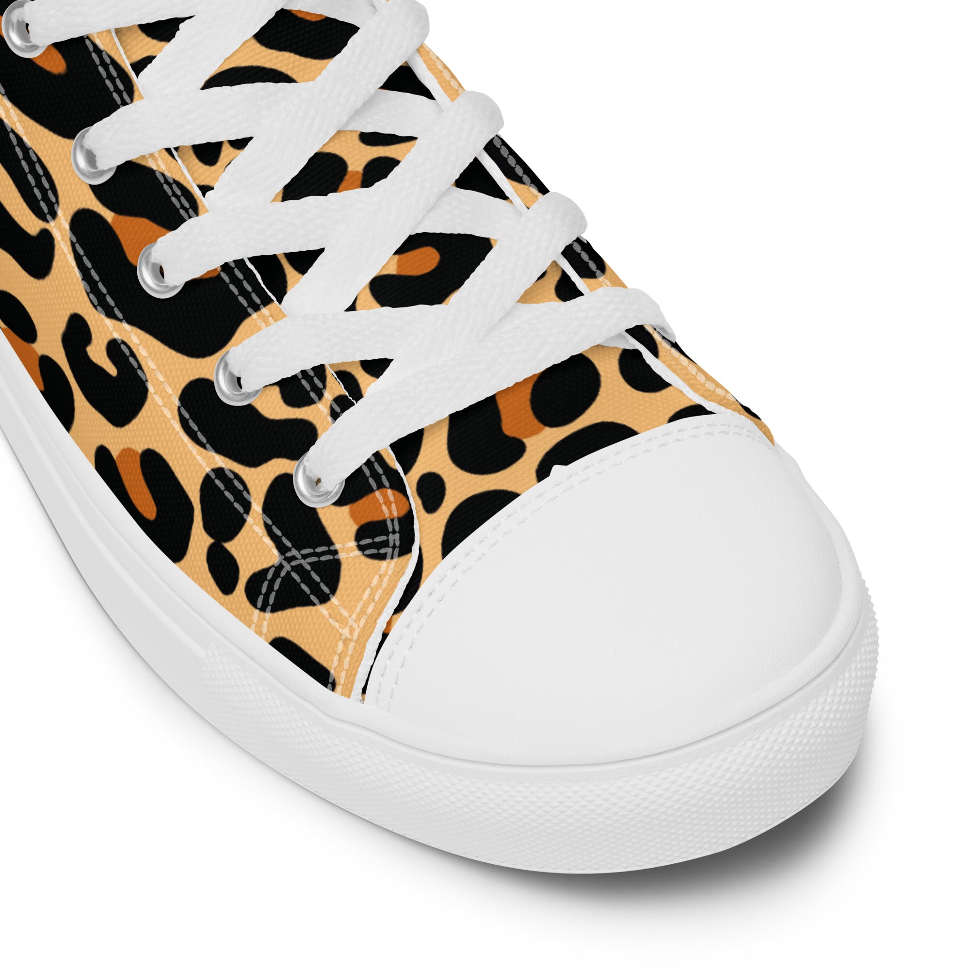 Unleash your wild side with the Wildcat High Top Shoes! These fierce and stylish high tops feature a bold animal print design that adds a daring edge to any outfit. Made with a durable polyester canvas upper and a breathable lining, they ensure all-day comfort while making a striking fashion statement. The cushioned insole, padded collar, and sturdy rubber outsole provide the perfect balance of support and style, whether you're hitting the streets or the festival scene. Get ready to stand out and prowl in style with the Wildcat High Top Shoes!